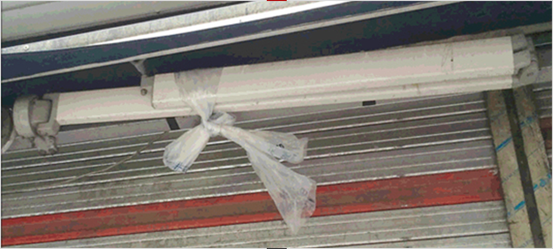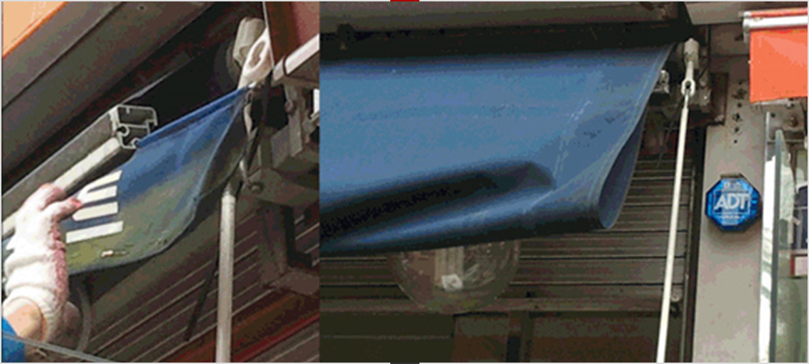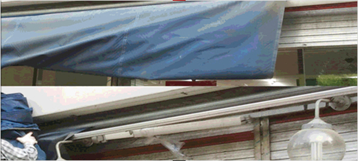 01 어닝을 접은 후 암을 묶어서 고정시키다.